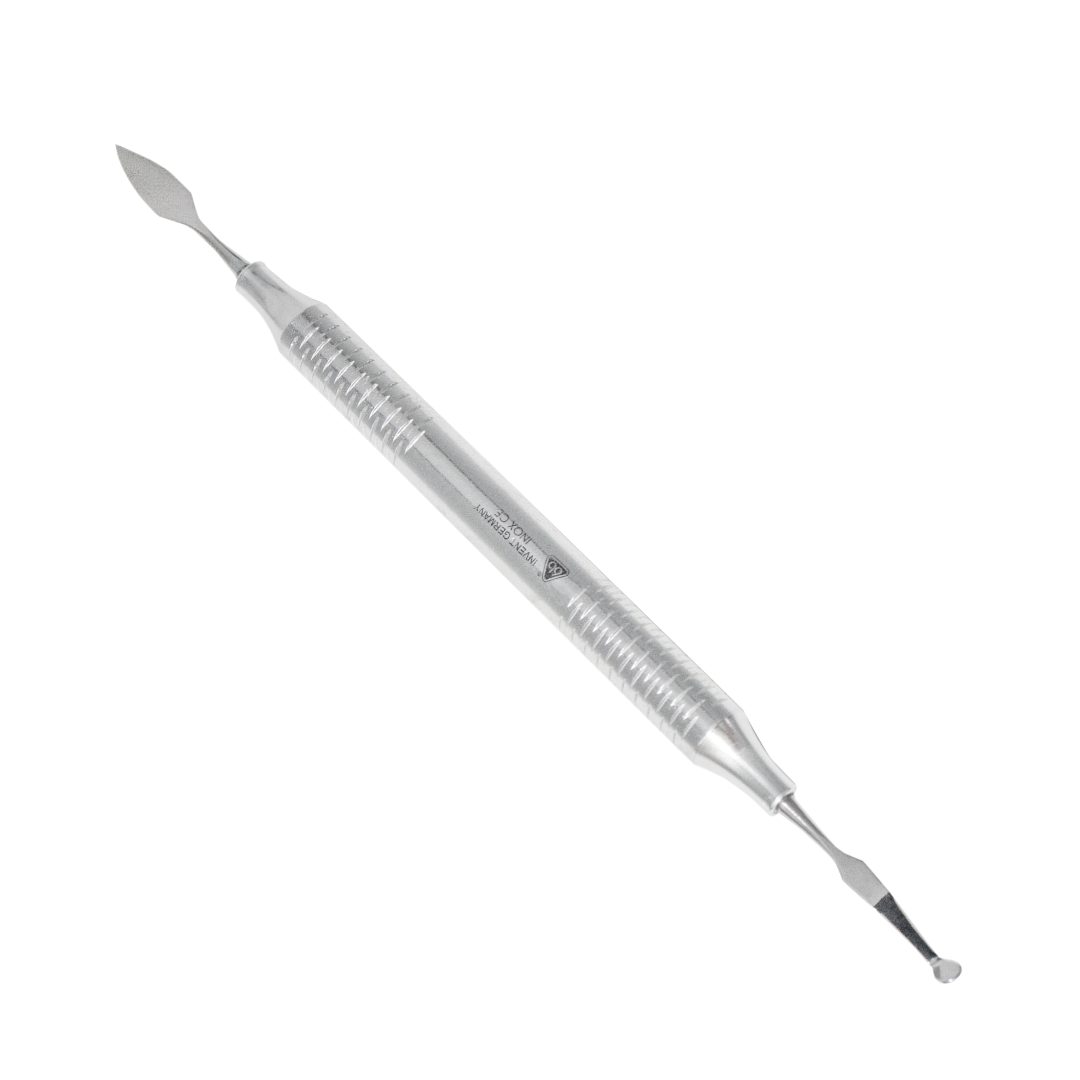 A Espátula Almore da 6B Invent é indicada para escultura e modelagem de materiais restauradores em procedimentos odontológicos, especialmente para manipulação e aplicação de resina composta e cerâmica durante restaurações e trabalhos protéticos.