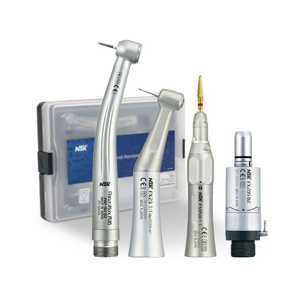 O Kit Acadêmico odontológico NSK é um conjunto composto por 4 peças de mão (alta rotação, micromotor, peça reta e contra ângulo) indispensáveis para o exercício das atividades acadêmicas durante a sua formação e ao cirurgião dentista na realização dos procedimentos de restaurações dentais.