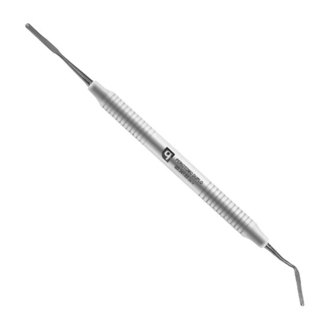 Instrumento odontológico indicado para extrações atraumáticas e procedimentos periodontais, utilizado para facilitar o rompimento do ligamento periodontal e o acesso ao dente durante cirurgias orais, reduzindo traumas aos tecidos moles e ósseos.